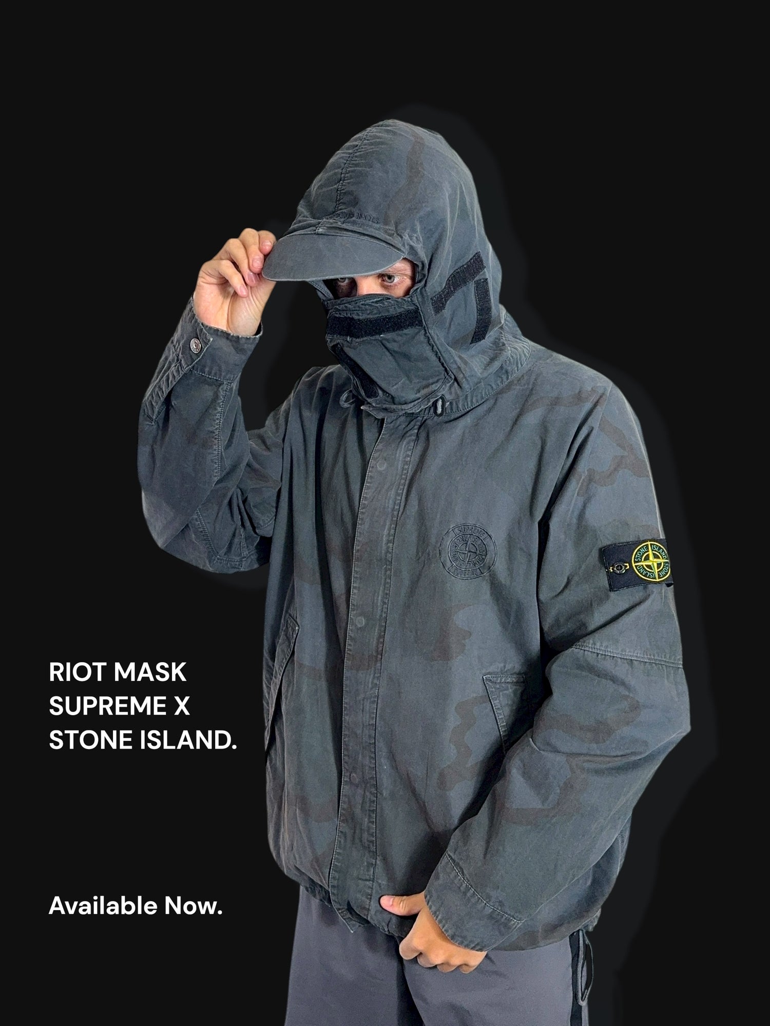 Stone Island x Supreme ‘Brushed Cottkon 2C Camo’ Riot Mask Jacket L
