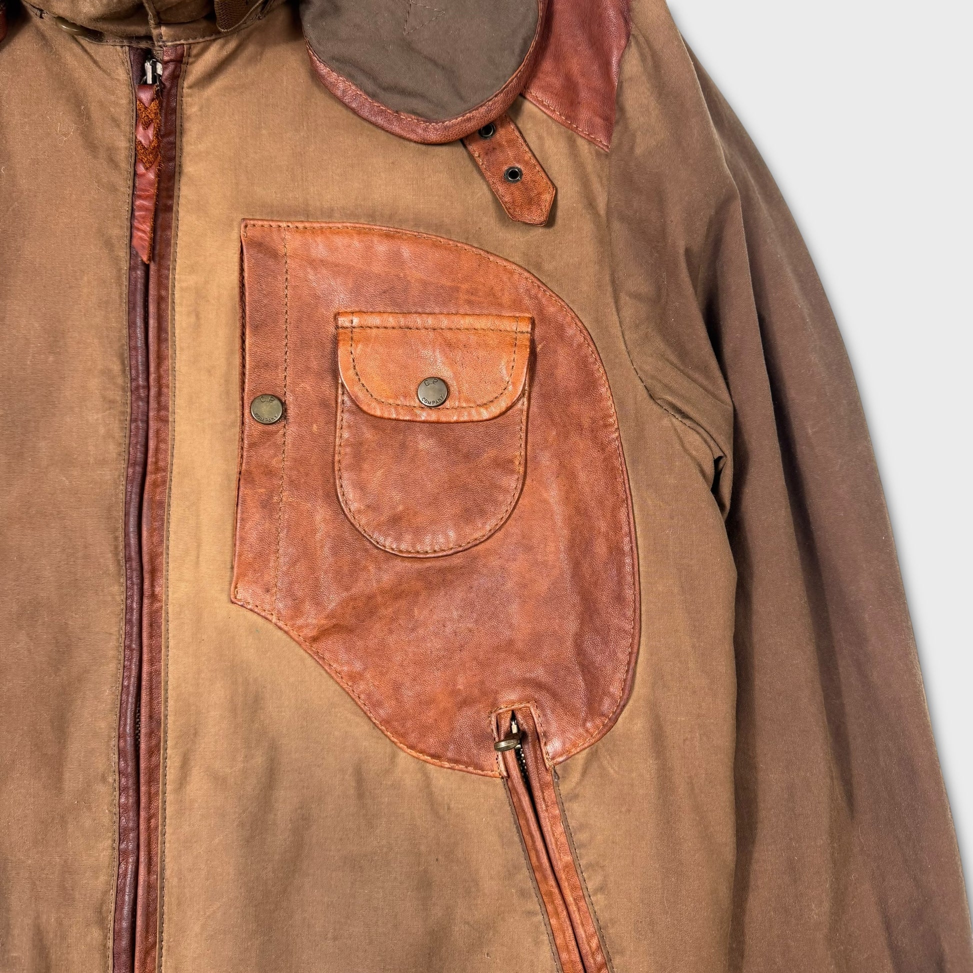 CP Company Hand Wax Finish Leather Goggle Jacket L