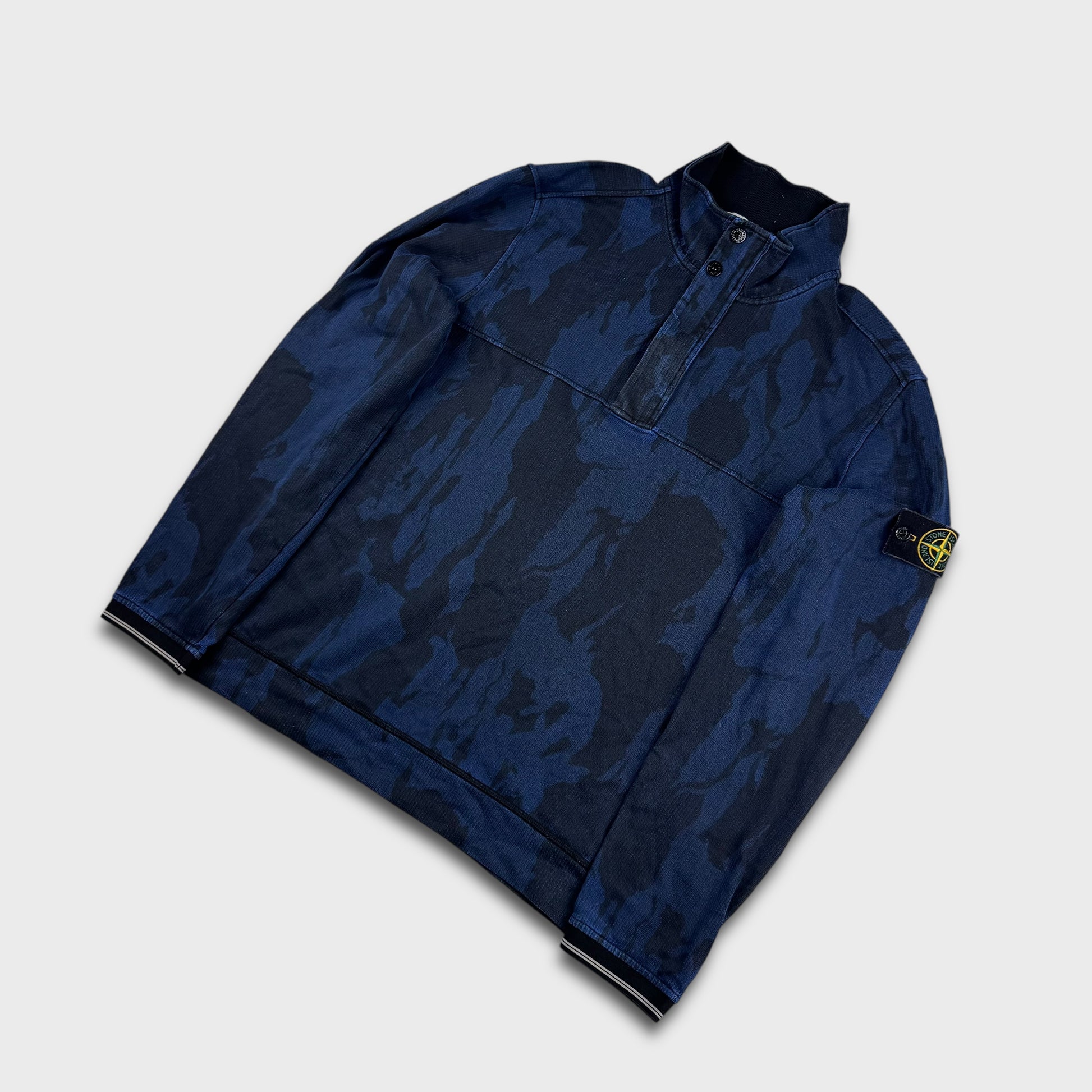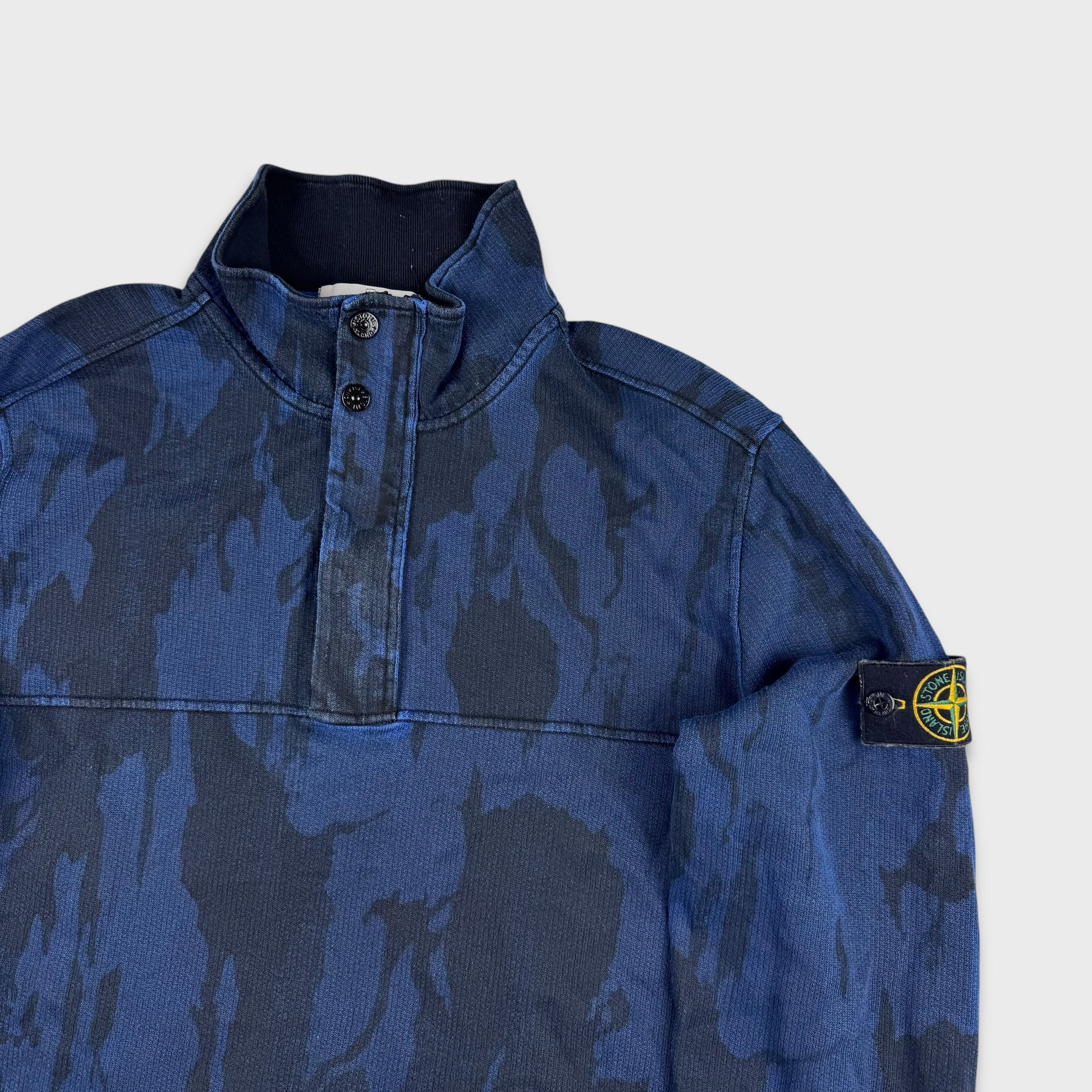 Stone Island Blue Camo Quarter Zip Sweatshirt XL