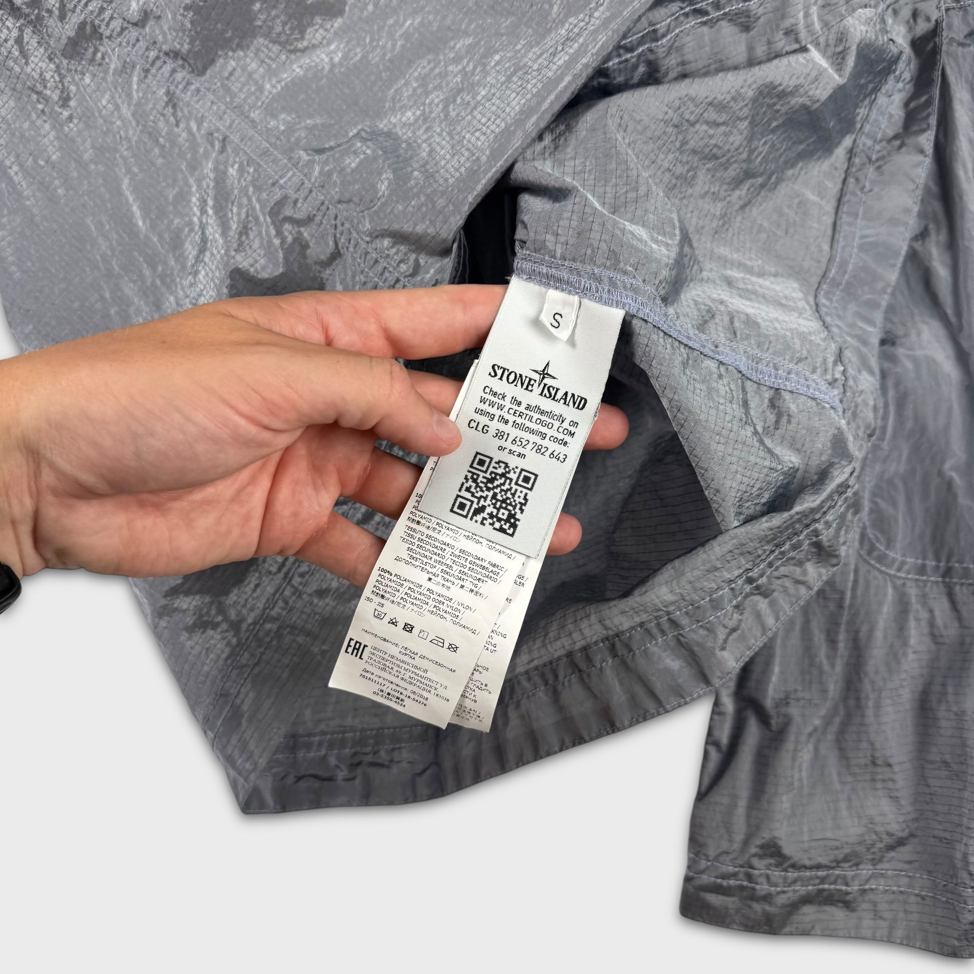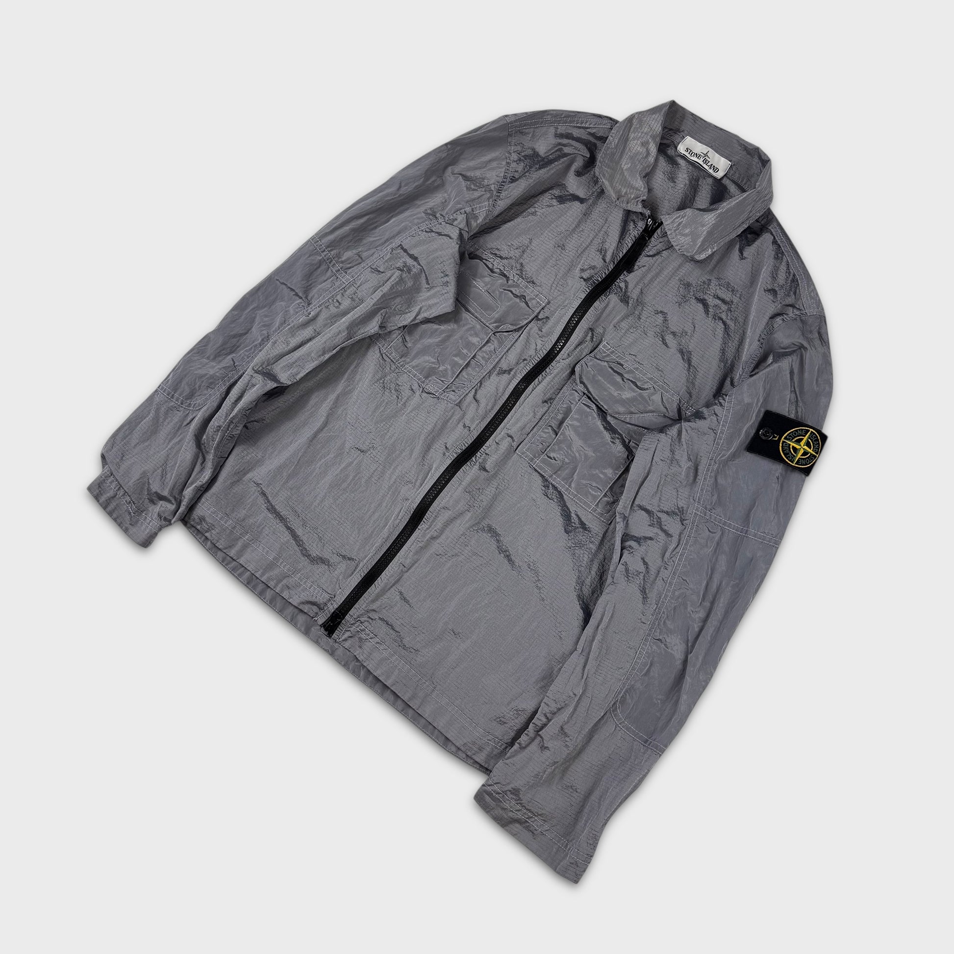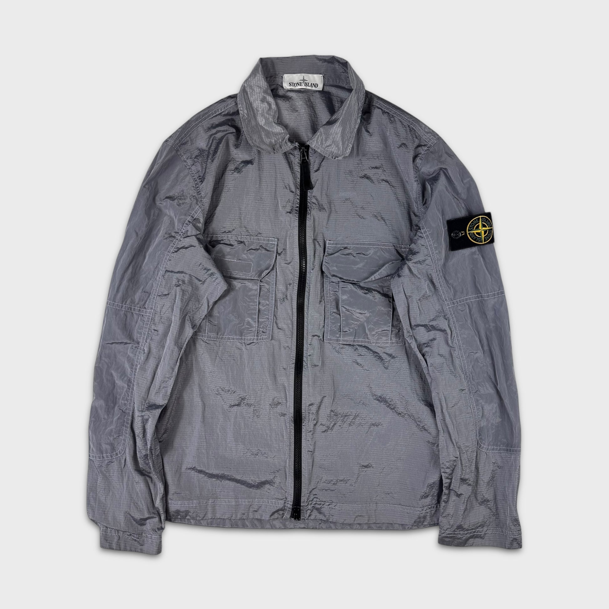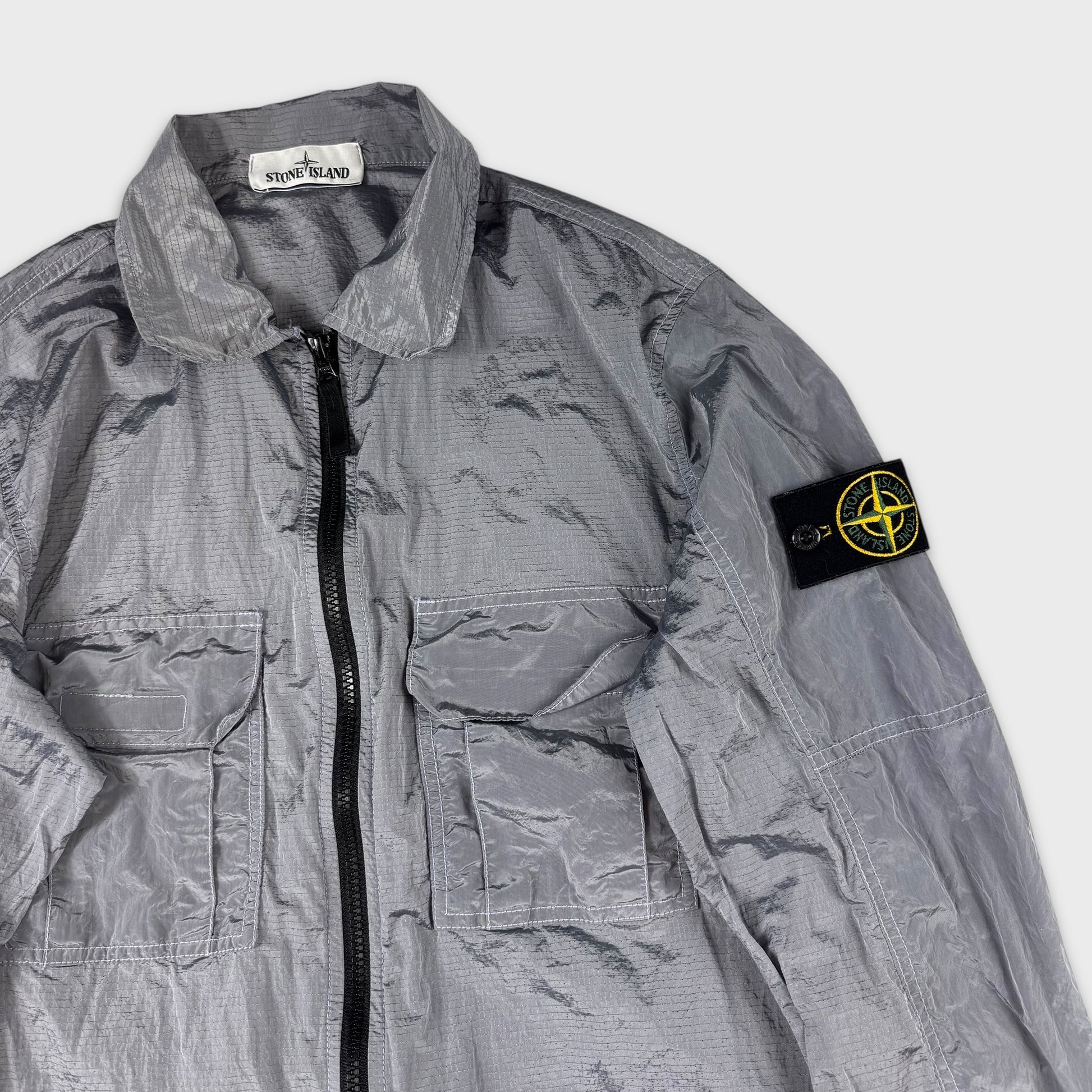 Stone Island Silver Double Pocket Nylon Metal Ripstop Overshirt S